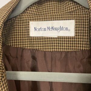 Norton McNaughton Vintage Blazer, Women's M, brown hounds-tooth, brown lining, light shoulder pads, good used condition. Circa 1980