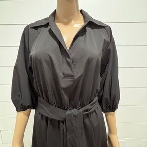 NWT Calvin Klein black dress puff 3/4 sleeve elastic waist removable belt sz6
