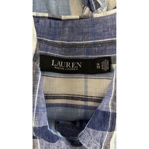 LAUREN Ralph Lauren Women's Blue Plaid Linen Shirt 1X Embroidered Floral - CJ