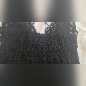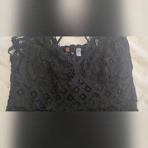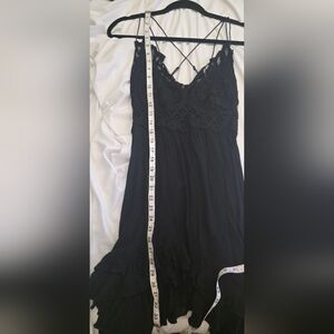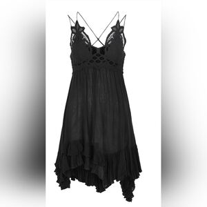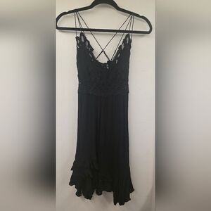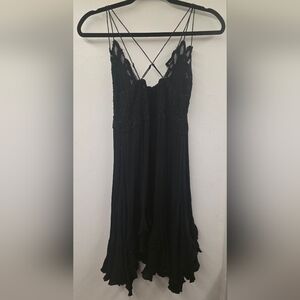 Free People Adella Lace Mini Dress Black Medium Boho Crochet Crisscross Back