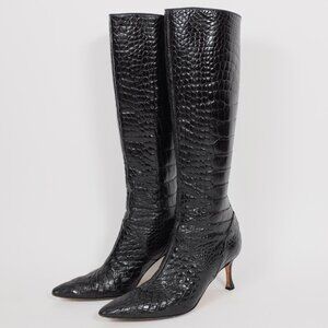 Manolo Blahnik boots shoes 39.5 / 9.5 real crocodile alligator knee high heels