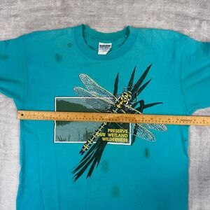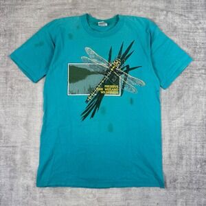 Vintage Nature Shirt Mens Large Teal Preserve Our Wetland Wilderness Dragonfly