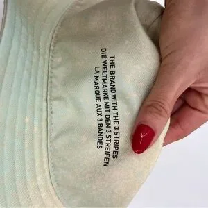 Adidas Originals Unisex Spray Print Bucket Hat featuring a soft pastel spray-dye finish in muted mint, cream, and beige tones. Classic bucket hat silhouette with a structured crown and stitched brim, finished with the iconic Adidas trefoil logo at the front and “The Brand With The 3 Stripes” text detail on the back. Lightweight and breathable, making it perfect for everyday wear, festivals, travel, and casual streetwear styling.