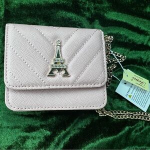 Chic and stylish pink quilted crossbody bag with a gold chain strap. Perfect for adding a touch of elegance to any outfit.