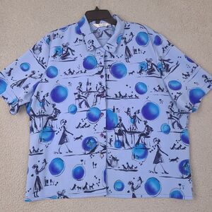 Tan Jay Women's Top Size 20w Blue Dogs Love Dog Button Up Shirt Camp