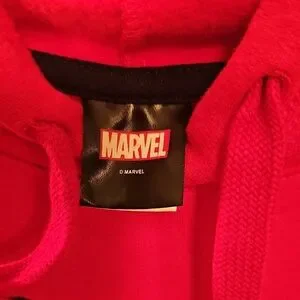 Bold red sweater featuring Captain America design. Blue sleeves add contrast. Perfect for Marvel fans.