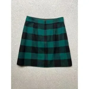 J Crew Buffalo Check Plaid Wool Blend Mini A-Line Skirt 6 Prep Academia Tweed