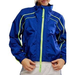 Free People FP Movement Varsity Blues Jacket Sapphire/Neon Green Sz M
