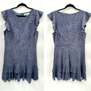 LOFT Lace Flutter sleeve blue tiered woman midi coquette feminine dress