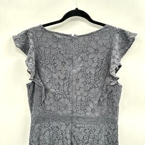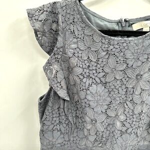 LOFT Lace Flutter sleeve blue tiered woman midi coquette feminine dress 12