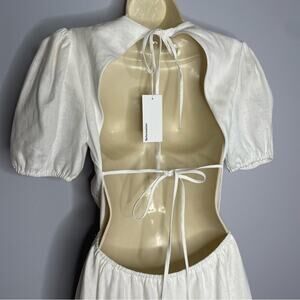 Reformation Anneliese Linen White Midi Dress Open Back Coastal Beach Sz. 6 New