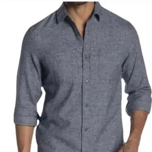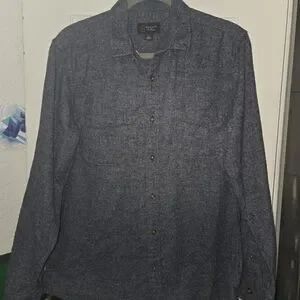 Upgrade your wardrobe with this sleek blue button-down shirt. Perfect for casual outings, it combines comfort with a modern look. size large