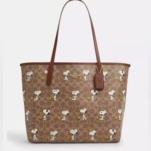 Coach X Peanuts City Tote Bag In Signature With Snoopy Print