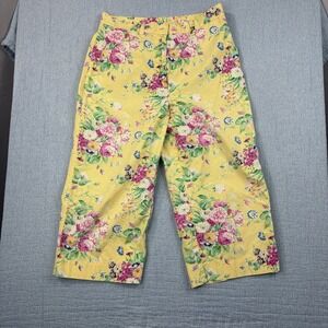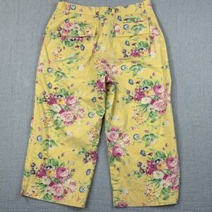 Vintage Lauren Ralph Lauren Yellow Floral Flat Front Pockets Belt Loops Crop 12