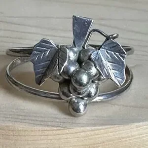 Vintage Taxco Open Cuff Bracelet Size 6.5 Grapes Leaf Mexico 925 Sterling 33.5g