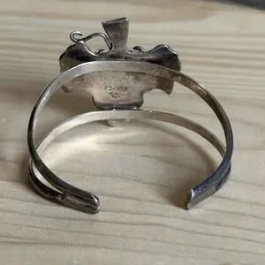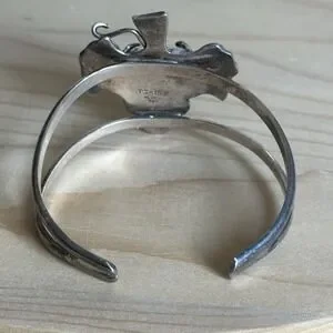 This Women's size 6.5" Vintage Signed Taxco Shop Marks Open Cuff Bracelet is a beautifully crafted piece made of purity hallmarked 925 sterling silver, with a grape leaf design sourced from Mexico 33.5 grams precious metal. It is a slightly adjustable resizable cuff style bracelet, perfect for various occasions such as engagements, weddings, anniversaries, birthdays, and special holidays like Mother's Day and Christmas. This piece of fine jewelry is a beautiful and meaningful addition to any woman's collection, adding a touch of elegance and Latin American Hispanic jewelry making, mining, and wine making history to her outfit. This Taxco cuff bracelet is in good pre owned clean condition with moderate use wear on the sterling with a touch of tarnish, well made and beefy built to stand up to everyday use for many decades to come. Please review pictures for details and size measurement info, thank you.
