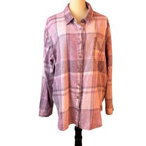 Berkley Jensen 100% Cotton Pink Plaid Button Up Blouse Womens XXL