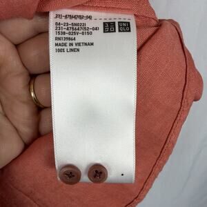 UNIQLO Womens 100% Linen Shirt Blouse Nantucket Red Small Long Sleeves Button Up