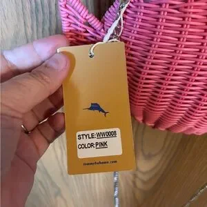 This is a new with tags Tommy Bahama pink woven wicker fish crossbody bag, shoulder bag or clutch. Silver strap can removed if you wish. Can just use the clear beaded strap if you choose. Clasp closure, and faux white pearl eyes. So cute! Check out my other TB listings, among lots of other items. Bundle or offer and save big! Thanks for looking through my closet.