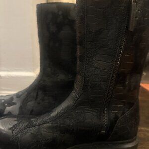 Expertly crafted from black Analine leather embossed with a crocodile skin design with a textured hair-on design on top