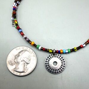 Silpada Silver Multicolor Beaded Choker Memory Wire Coin Pendant Necklace N1505