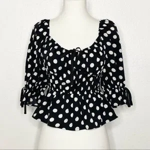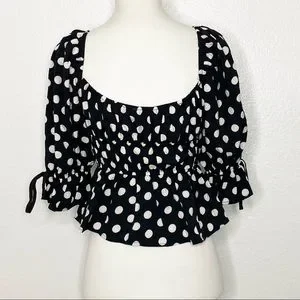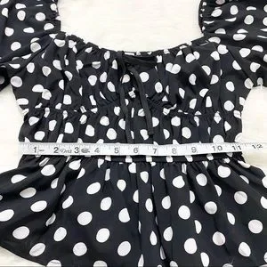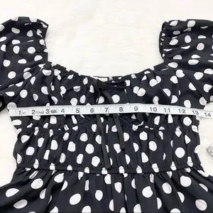 Black and white polka dot milkmaid top. Great condition. Runs a bit small. See measurements. Size M.