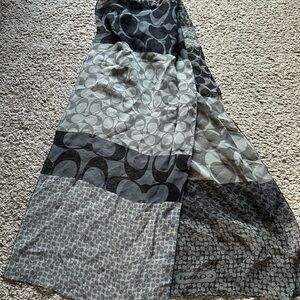 Chic scarf by Coach with a stylish black and gray pattern. Perfect for versatile wear.