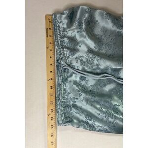 Victoria's Secret satin pajama lounge pants in a beautiful teal/seafoam green floral jacquard pattern. These pants have a soft, silky feel with a subtle sheen that gives them an elegant look while still being comfortable for sleep or lounging.