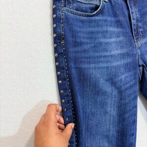 ZARA Women Skinny Jeans Size 6 Blue Studded Side Raw Hem Stretch Denim