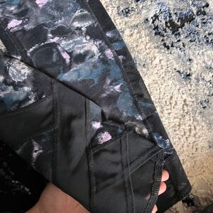 These stylish leggings feature a unique black and blue print, perfect for any occasion. Comfortable and trendy, they are a must-have for your wardrobe.