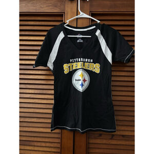 Pittsburgh Steelers NFL Majestic Fan Fashion Women’s V Neck T-Shirt Medium