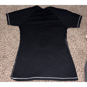 The Pittsburgh Steelers NFL Majestic Fan Fashion Women’s V Neck T-Shirt in size Medium is the perfect addition to any fan's wardrobe. Made by the official NFL apparel provider, Majestic, this black shirt features the iconic Steelers team logo and is specifically designed for women. Show off your team spirit during the regular season with this officially licensed shirt, made in El Salvador. Perfect for game days or casual wear, this shirt is a must-have for any Steelers fan.