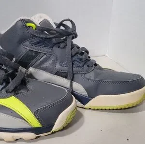 Dynamic Nike sneakers with gray and lime design. Ideal for active kids.