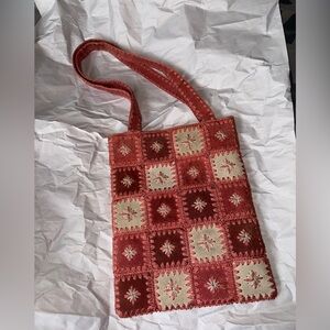 Nine West vintage, coral-colored, genuine leather, square-one quilt-designed shoulder bag.