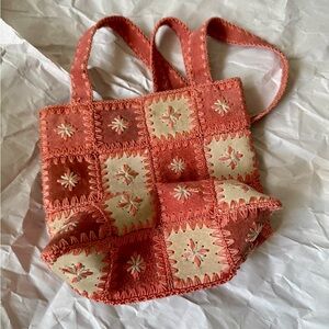 Nine West Vintage, coral-colored, genuine leather Patchwork Shoulder Bag
