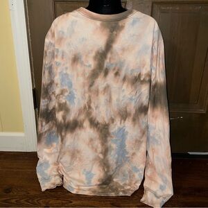 Nike Classic Tee Cream, Blue Brown Tie-Dye Long Sleeve Logo Cotton Shirt Size XL
