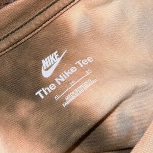 The Nike Tee brown, cream and light blue gray acid wash tie dyed crewneck long sleeve shirt with white front logo