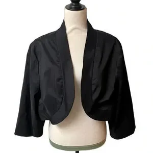Vintage Niteline Black Open Front Bolero Jacket Cropped Formal Layering Large