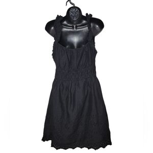 Old Navy Women's L Black Eyelet Hem Smocked Waist Sun Dress Boho Cotton