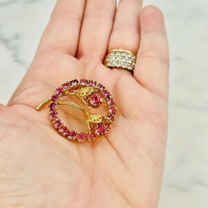 Add a touch of vintage charm to your outfit with this stunning Pink brooch wreath circle pin This piece is in great vintage condition with minor signs of wear. The measurements can be seen in the photos provided. Please see all photos for details.