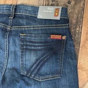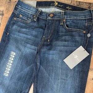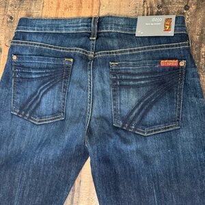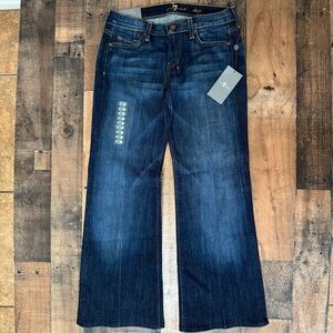 Stylish dark blue flare jeans. Classic five-pocket design. Perfect for any occasion.