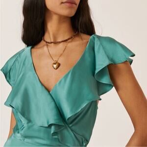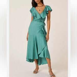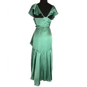 Anthropologie Green Satin Ruffle Wrap Coquette Feminine Midi Maxi Dress XXS NWT