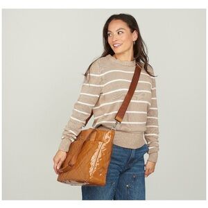 Measures 13"L x 4"W x 12"H with a 28" to 56" crossbody strap; weighs 1 lb, 5 oz
