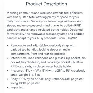 IHKWIP Quilted Carry Your Confidence Anti-Theft Tote Patent