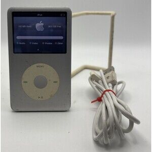 The Apple A1136 MB029LL iPod 5th Gen with Video Storage Media Player in Silver is a portable media player manufactured by Apple between 2005-2006. It features a 2.5" screen size, 60GB storage capacity, and connectivity through a 30-pin port. This model includes various audio and video features such as photos, videos, a headphone jack, and various utilities like a calendar, stopwatch, and clock. With its sleek silver design and Apple brand reputation, this iPod is a classic choice for music and multimedia storage on the go.