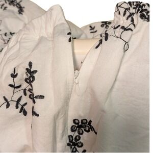 Ophelia Roe Womens 2X White Black Floral Embroidered Ruffle Sleeveless Blouse