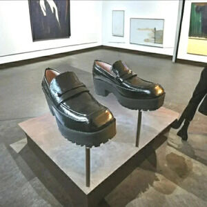 Absolutely Beautiful New With Tags No Issues Black Patent Leather Chunky Lugsole Retro Slip-On Square Toe Loafers Classic Women's Size 9 Business Casual Streetware Preppy Academia