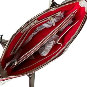 NWT Authentic D&B Top of the Line Vacchetta Florentine Italian Leather Small East/West Satchel. Color: Ecru (Bone). It looks a little lighter in the pics but it is NOT white. Gold Tone Sturdy Hardware. Zip Top Entry with Leather Tie Down Tassles each side. Thick Handstitched Details throughout all seams. Exterior Front Has Embossed D&B Signature and 2 Front Pockets with Snap Tab Closure. Pockets are 4.5” tall. Comes with Removable Leather Name/Luggage Tag Bag Accent. Bottom Feet Protectors. Red Cotton Fabric Lined Interior. 1 Wall Zip Pocket, 2 Slip Pockets, Key Finder, and central Zip Compartment that acts as a Divider Inside. Really Beautiful Bag.