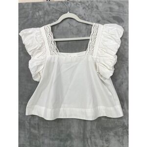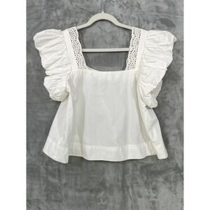 By Anthropologie Small White Cotton Lace Top Puff Flutter Sleeve Square Neck