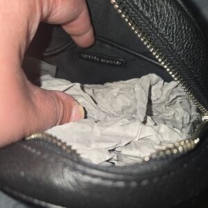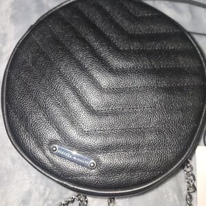 Chic black mini bag by Rebecca Minkoff. Features textured leather and silver hardware. Perfect for stylish outings.